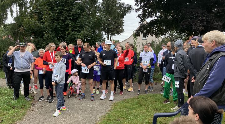 Hier scharren die Teilnehmenden noch mit den Schuhe und warten auf das Startsignal. Wie man sehr schön erkennen kann, sind in diesem Jahr besonders viele Generationen vertreten gewesen. Wir freuen uns über jeden Nachwuchs, neue und bekannte Gesichter. Die Stimmung war wieder ganz ausgezeichnet, obwohl wir ausnahmsweise mal keine Sonne hatte - und die Ausdauer beeindruckend. 78 Teilnehmende umrundeten den Märchensee 854 Mal, das sind zusammen 1025 km. Wir danken allen, die dabei waren, ob laufend, helfend, jubelnd oder mit finanzieller Unterstützung für das schöne Erlebnis und Ergebnis.